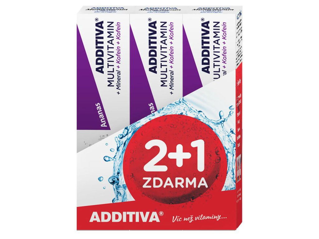 Additiva Multivitamín + Minerál + Kofeín, Ananás šumivé tablety 3 x 20 ks