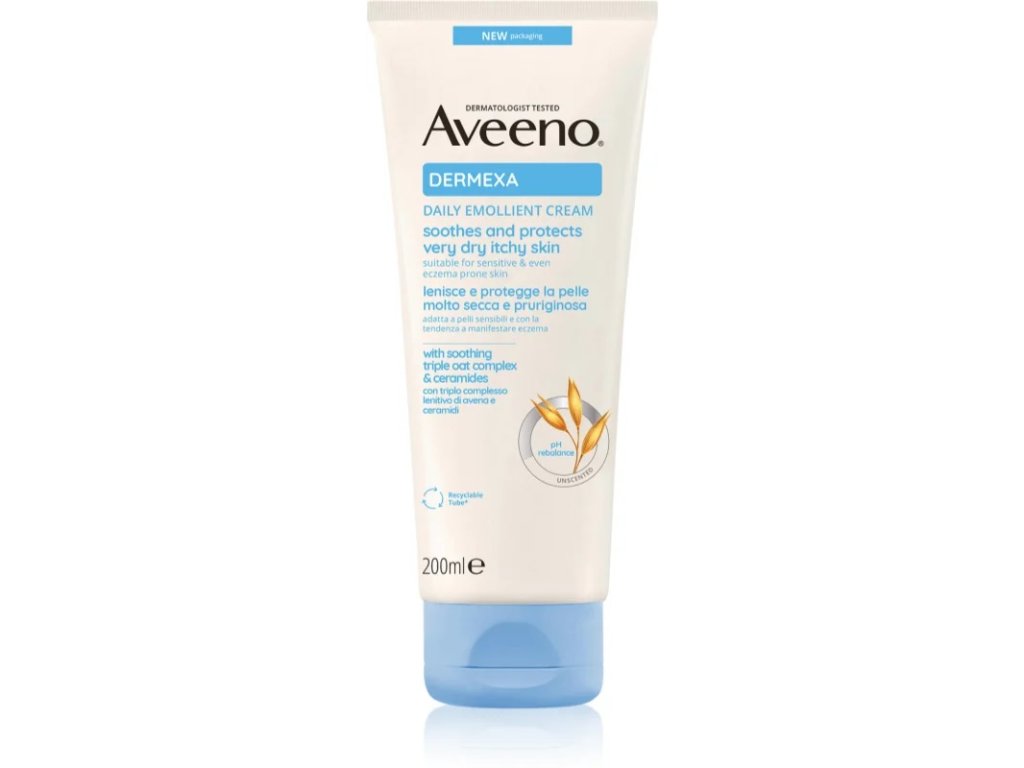 Na veľmi suchú, svrbiacu a citlivú pokožku: Aveeno® Dermexa Emolienčný telový krém upokojuje a chráni veľmi suchú, svrbiacu, citlivú pokožku a je vhodný aj na pokožku so sklonom k ekzému.