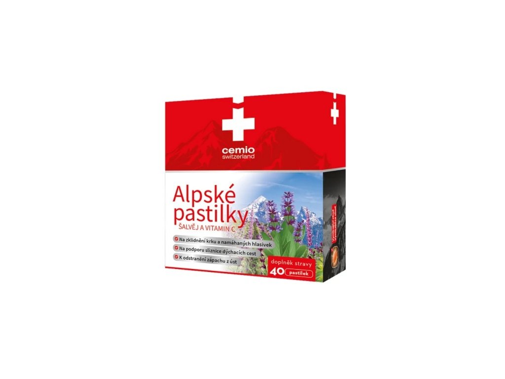 Alpské pastilky so zvýšeným obsahom šalvie a vynikajúcou chuťou. Podporujú obranyschopnosť pri vysokej záťaži, priaznivo pôsobia na sliznice dýchacích ciest a odstraňujú zápach z úst.