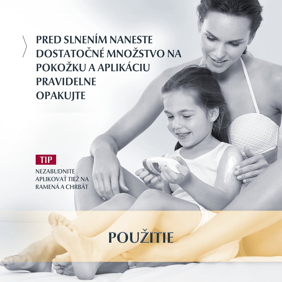 - Pred pobytom na slnku naneste prípravok na pokožku v dostatočnom množstve a aplikáciu pravidelne opakujte, najmä po plávaní, ak ste sa spotili alebo po utretí uterákom. Iba tak zachováte pôvodnú úroveň ochrany.