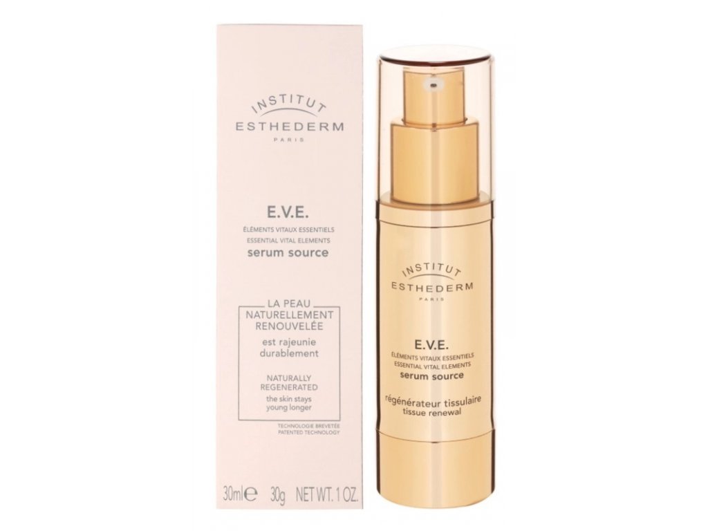 Sérum pre hĺbkovú regeneráciu buniek s omladzujúcim účinkom. Sérum pomáha pokožke prirodzene sa regenerovať a prinavrátiť vlastnú originálnu kvalitu pleti. Prípravok Institut Esthederm E.V.E. je tou správnou voľbou v boji proti starnutiu pleti. Hlavnými účinkami starostlivosti E.V.E. sérum je optimalizácia základných funkcií buniek: respirácia, delenie, rast, vlastná ochrana, komunikácia. Výsledkom je odvrátený proces starnutia, samoregenerácia pleti. Pleť je prirodzene obnovovaná, získava späť svoju textúru a je viac rozjasnená. Pleť je bezprostredne a udržateľne omladená.