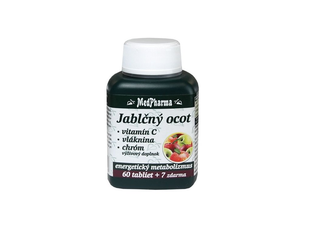 MedPharma Jablčný ocot + Vitamín C + Vláknina + Chróm tbl 60+7 zadarmo