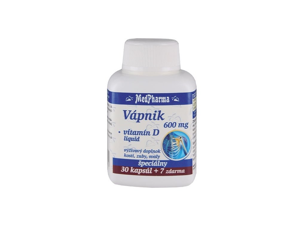 MedPharma Vápnik 600 mg + Vitamín D cps 30+7 zadarmo