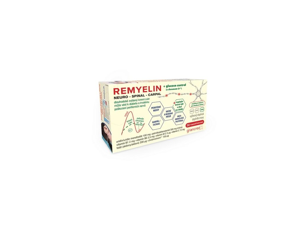 Remyelin obsahuje kombináciu uridínu, palmitoyletanolamidu, vitamínov sk. B, vitamínu C a biologicky aktívnej kyseliny listovej. Je vhodný pre ľudí s neuropatickou bolesťou chrbta, zápästia a nôh.