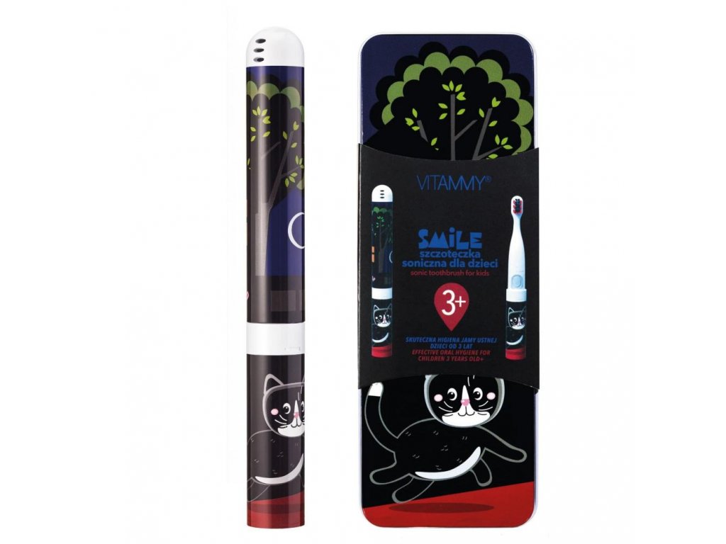 VITAMMY SMILE detská sonická zubná kefka, Čierna mačka, od 3 rokov